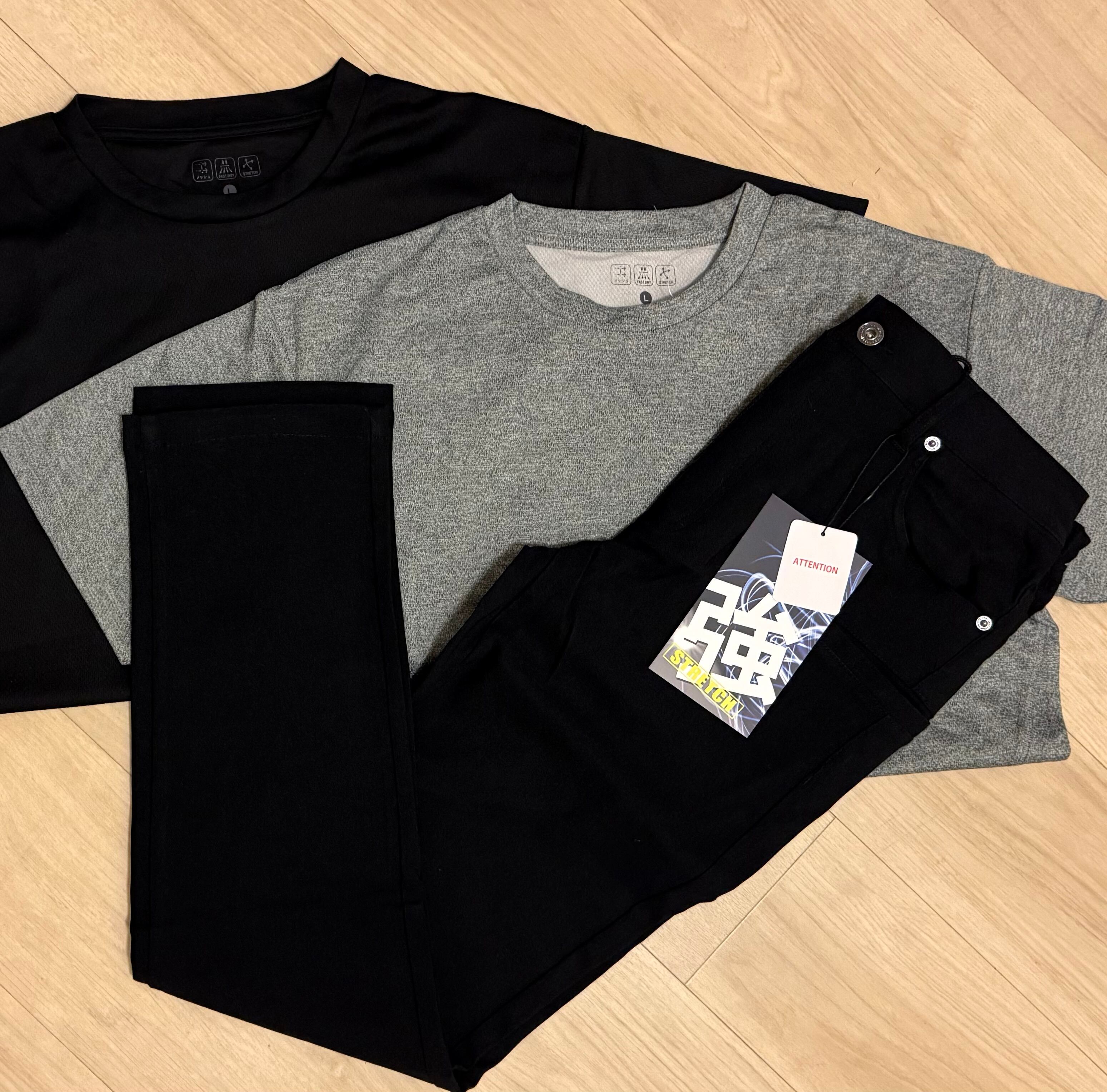 即納【定番3点セット】ドライTシャツ2点とスーパーストレッチスリムパンツのセット販売【L,LL】
